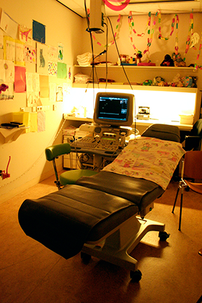 ・処置室。子供の気を紛らわすための人形や絵が沢山飾られている。