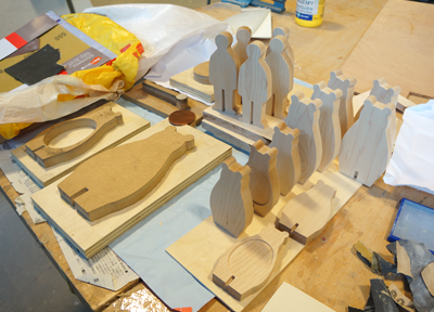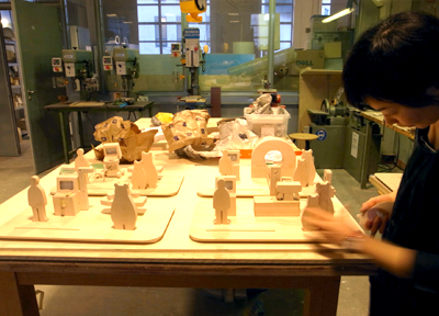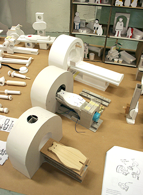 ベアトリクス病院で考えた「子供が楽しめるプリパレーションのおもちゃ」を表現するため、簡単な試作を作り始めました。簡単な仕掛けで特徴的な動きやある状況を表現してみるという、以前学校で行っていた試みを思い出し、おもちゃに同じように何らかのインタラクティブな作用を取り入れてはどうかと考えました。その試みとは複雑なメカニズムやハイテクな仕組みなどを用いずに、ある形にある単純な動きを合わせ動物や昆虫の動きを比喩的に表現するというもので、昔のからくりおもちゃを触ったときのような驚きがありました。