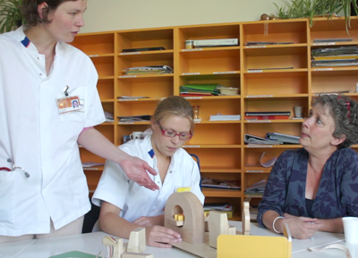 簡易的に作った模型にベアトリクス病院のプレイスペシャリストの方達の意見をもらい、おもちゃのプロトタイプを完成させました。